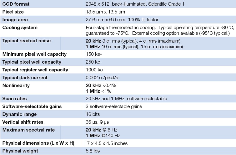 - E2V scientific grade 1 CCD – 非常适合于各种光谱应用中的弱光检测