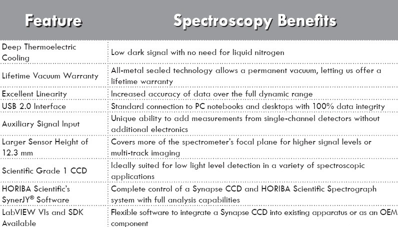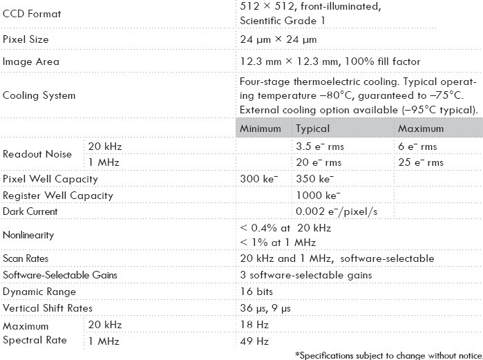 HORIBA Scientific前照射VS 512×512 CCD是各种低噪声光谱采集的理想选择。 其24μm正方形像素尺寸提供了高的全容量,大的动态范围和优异的信噪比。 12.3毫米高度的传感器,安装在HORIBA Scientific光谱仪的焦平面,成为多道光谱检测的理想选择。