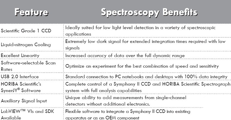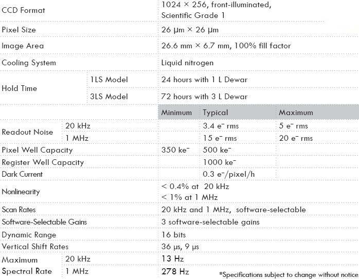 HORIBA Scientific前照射VS 1024×256 CCD是低噪声采集的理想选择。其26μm×26μm像素尺寸提供了高的容量,大的动态范围和优异的信噪比。 该芯片的高度使其成为多道测量的最佳选择,可见到近红外范围内高度方向上的binning,大大提高了信噪比。