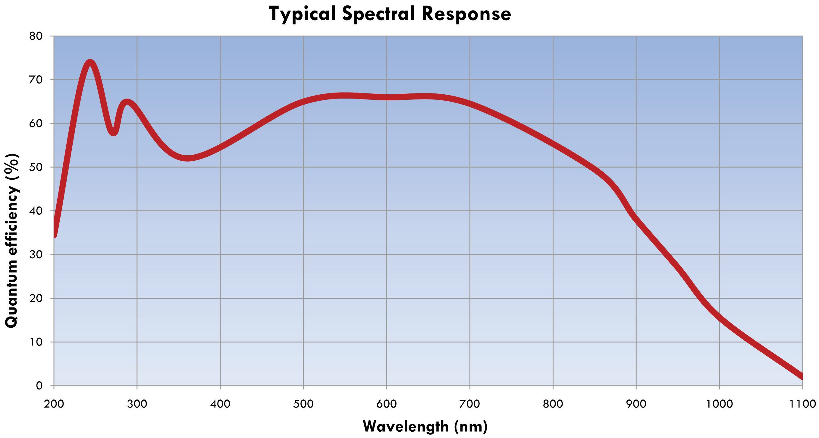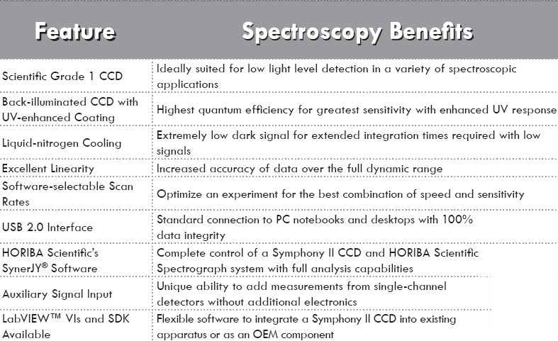 HORIBA Scientific背照射UV 1024×256 CCD的卓越的量子效率使得该检测器非常适用于紫外,可见和近红外光谱应用中的极弱信号采集。 该检测器更适合峰值窄的发射光谱。