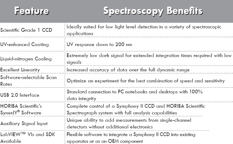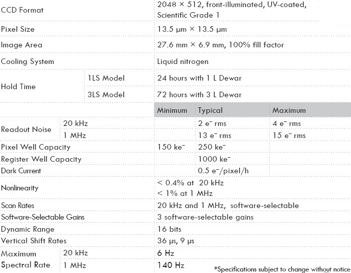 HORIBA Scientific前照射UV 2048×512 CCD是紫外可见光谱应用中低噪声采集的理想选择。其13.5μm×13.5μm像素提供非常高的光谱分辨率。检测器设计有极低的读出噪声的低噪声放大器。该芯片的高度使其成为紫外到可见光谱区域多道追踪测量的最佳选择。