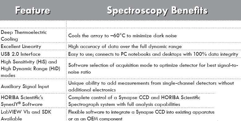 HORIBA Scientific的Synapse扩展InGaAs阵列探测器是1000-2200 nm近红外(NIR)光谱区域低光级测量的理想选择。 提供512×1(25×250μm),512×1(50×250μm)和1024×1(25×250μm)像素格式,这些InGaAs检测器可提供高分辨率,同时保持完整的容量。 Synapse InGaAs阵列具有16位动态范围,深度电热冷却,并使用机械快门来减去背景。 金属密封提供永久真空密封。 一个即插即用的USB 2.0接口允许100%数据完整性移植。 应用包括近红外拉曼,半导体,SWCNTs,光致发光测量等。 灵敏度从0.8μm到1.7μm,探测器也同样可用。