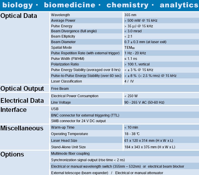 由于激光系统的特殊技术设计,工作在单横模,具有高峰峰值脉冲功率稳定性,良好的功率输出稳定性以及短脉冲持续时间。 激光系统紧凑,重型的结构允许用户将激光头和控制装置轻松集成到其系统中。该系统包括被动Q开关脉冲激光器,工作在不同重复频率的单脉冲模式下。 有两组MOPA系统:一组是单发模式,频率能达到1 kHz,另一组从1 kHz到20 kHz(MOBA266-200mW)。 它也可以由外部触发源触发,也可以通过特殊的软件命令触发内部触发源。可通过USB接口发送简单的命令对脉冲能量输出进行调节。 激光系统适用于便携式设备和分析仪器。