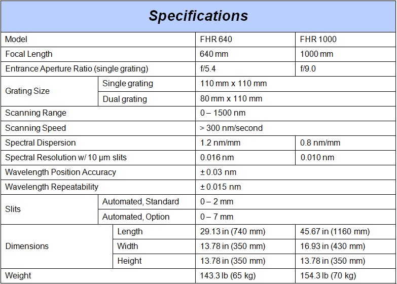 专为需要高精度并立即获得结果的研究人员设计,FHR可在UV到IR的广泛光谱范围内使用。 仪器的铸体设计考虑到温度引起的应力和膨胀,防止任何显著的波长偏移或信号损失,获得最佳性能。